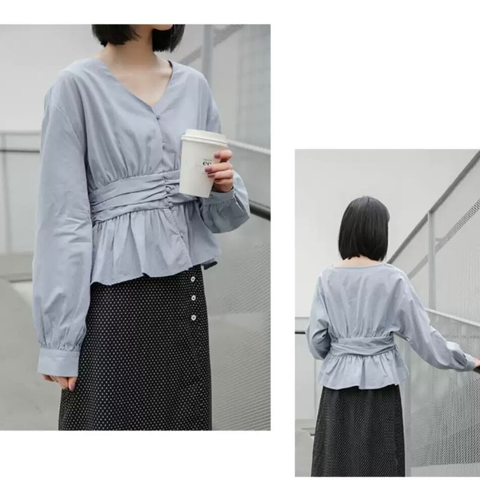 ブラウス レディース 春 夏 秋 春夏 春秋 長袖 Vネック 無地 韓国風 オフィス OL 通勤 通学 綿ブラウス 可愛い オシャレ 着痩せ きれいめ カジュアル 大人ガーリー 10代 20代 30代 40代 ショート ショート丈 ウエスト おしゃれ カジュアル 大人かわいい さわやか スカート スカートコーデ パンツ パンツコーデ 学生 ママ お出かけ ママコーデ ランチ ディナー 着痩せ 2色 白 フォグブルー Sサイズ Mサイズ Lサイズ 送料無料