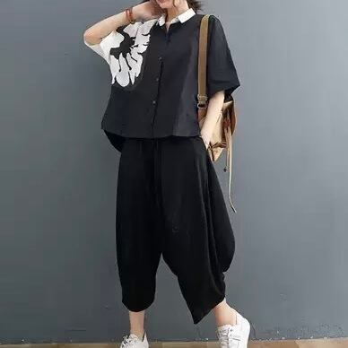 ズボン サルエルパンツ パンツ レディース ポケット セットアップ 2点セット セット シャツ ボトムス 楽ちん 楽 ハイウエスト ウエストゴム 半袖 折り襟 襟付き 綿麻 麻 リネン 大きいサイズ 体型カバー L XL XXL シンプル ゆったり カジュアル ワンポイント 森ガール おしゃれ お洒落 デザイン 黒 白 モノトーン 白シャツ 黒シャツ 黒ズボン 春夏 夏 リゾート お出かけ 休日 お休み ドライブ スニーカー 大人 大人女子 10代 20代 30代 40代 50代 60代 マダム