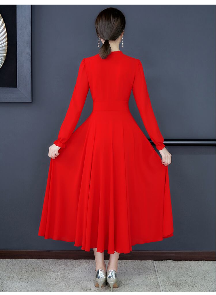 レディース ワンピース スカート ロング 膝下 ロング丈スカート ロング丈ワンピース 袖あり Vネック かわいい 大人可愛い カジュアル 大人 上品 おしゃれ お洒落 きれいめ 大人女子 大人っぽ 女っぽ こなれ感 20代 30代 女性用 デート ランチ 二次会 お出かけ 公園デビュー 女子会 休日 旅行 イベント 着回し 普段使い ファッション コーデ スタイル 楽ちん モテ 体系カバー プレゼント トレンド インスタ映え ゆったり ラフ ブラック レッド ワインレッド 大きいサイズ 送料無料