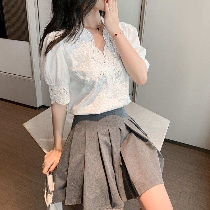 レディース トップス ブラウス カットソー 半袖 パフスリーブ Vネック ショート丈 涼しい 上品 清楚 シンプル 無地 体型カバー 着瘦せ 定番 かわいい 大人可愛い 大人女子 女の子 透け感 抜け感 こなれ感 カジュアル エレガント ナチュラル おしゃれ お洒落 かっこいい ラブリー コーデ 着回し 通学 通勤 女子会 食事会 OL オフィス 10代 20代 30代 春 夏 大きいサイズ ラージサイズ S M L XL 2XL 白 ホワイト