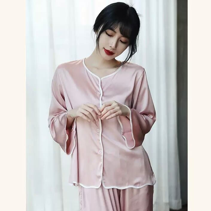 上下セット パンツ 袖あり 長袖 パジャマ レディース ルームウェア ボタン 前開き 2点セット セットアップ 部屋着 無地 上下 シャツ サテン 着心地良い ファッション ホームパジャマ シンプル おしゃれ オシャレ デート お泊まり 寝間着 大人 大人女子 学生さん 大学生 専門学生 旅行 リゾート ママ マダム 10代 20代30代 40代 かわいい 美人 大人ガーリー 大人かわいい ピンク 桃色 黒 ブラック 白 ホワイト M L XL サイズM サイズL サイズXL 春 夏 秋 春夏 秋冬