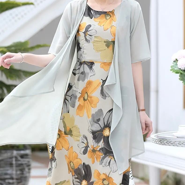 ワンピース カーディガン レディース 女性 40代 膝丈ワンピース 膝丈 春夏 春 夏 キャミワンピース UVカットカーディガン オシャレセットアップ セットアップ おしゃれ お洒落 韓国風 通勤 ママ マダム お出かけ 休日 デート 楽ちん 着痩せ 大きめサイズ 花柄 大柄 淡い 30代 50代 60代 リゾート 結婚式 二次会 パーティ 主役級 大人コーデ 5部丈 サイズXL サイズ2XL サイズ3XL サイズ4XL サイズ豊富 送料無料 2点セット スカート