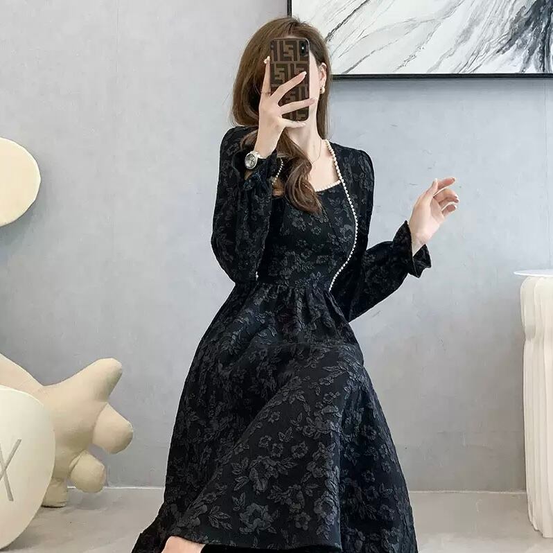 ワンピース レディース 女性 黒 ブラック 花柄 パール 20代 30代 40代 きれいめ オシャレ お洒落 おしゃれ フォーマルワンピース 結婚式 ワンピース ドレス 長袖 秋物ワンピース 30代 40代 10代 パーティードレス 結婚式 二次会 ママ ママコーデ ランチ ディナー お食事会 食事 マダム 大人 大人女子 大人ガーリー 主役級 上品 ウエスト スタイル効果 スタイルアップ サイズS サイズM サイズ L サイズXL ヒール ファッション 袖あり 長袖 着痩せ 春 秋 冬 送料無料