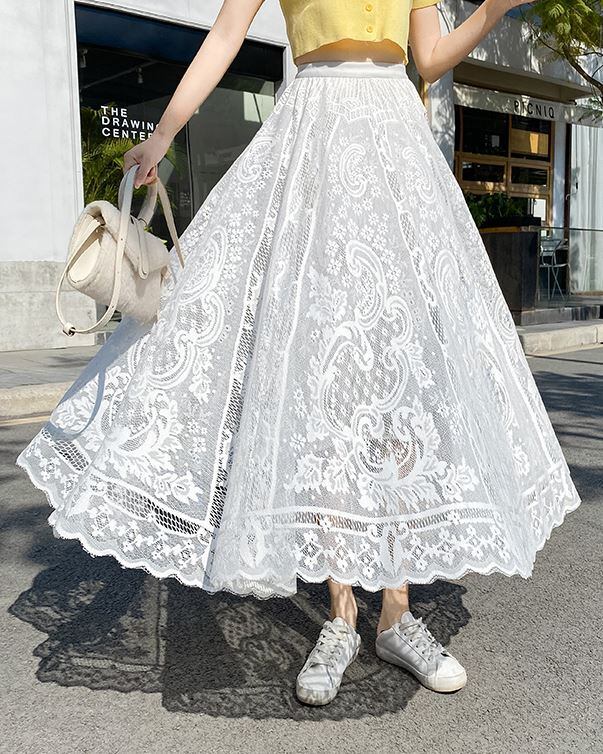 繊細なレースデザインが女性らしいロングスカート。