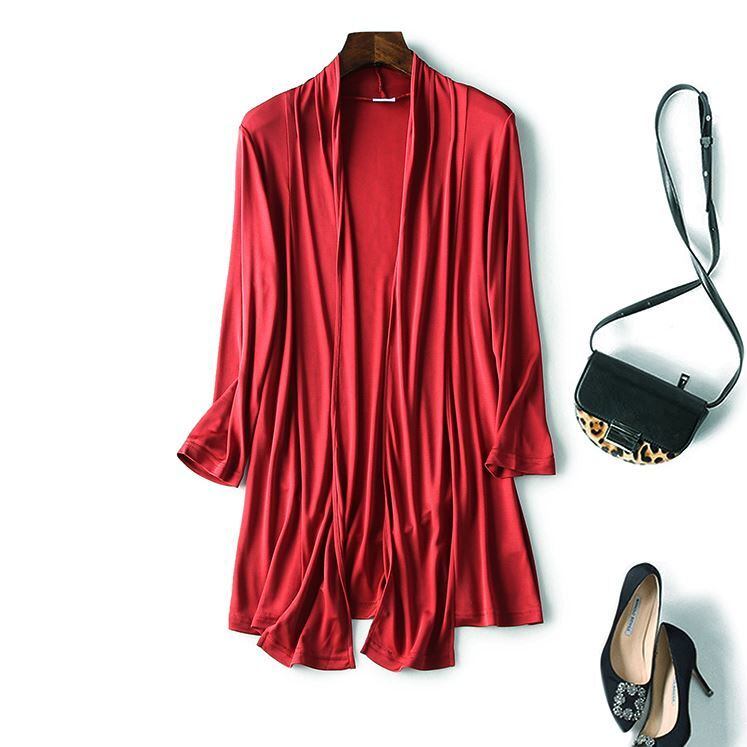 トップス レディース カーディガン ニットカーディガン サテン調 ミディアム丈 サマーニット 七分袖 薄手 紫外線対策 UV対策 日焼け防止 冷房対策 大人可愛い 大人 大人女子 上品 清楚 カジュアル おしゃれ お洒落 シンプル 大きいサイズ 体型カバー ママコーデ ママ 体系カバー お出かけ デート ランチ 女子会 ディナー 旅行 休日 普段使い 着回し リラックス 重ね着 春 夏 2022 新作 送料無料 グレー グリーン ブラック レッド ベージュ 10代 20代 30代 40代 50代