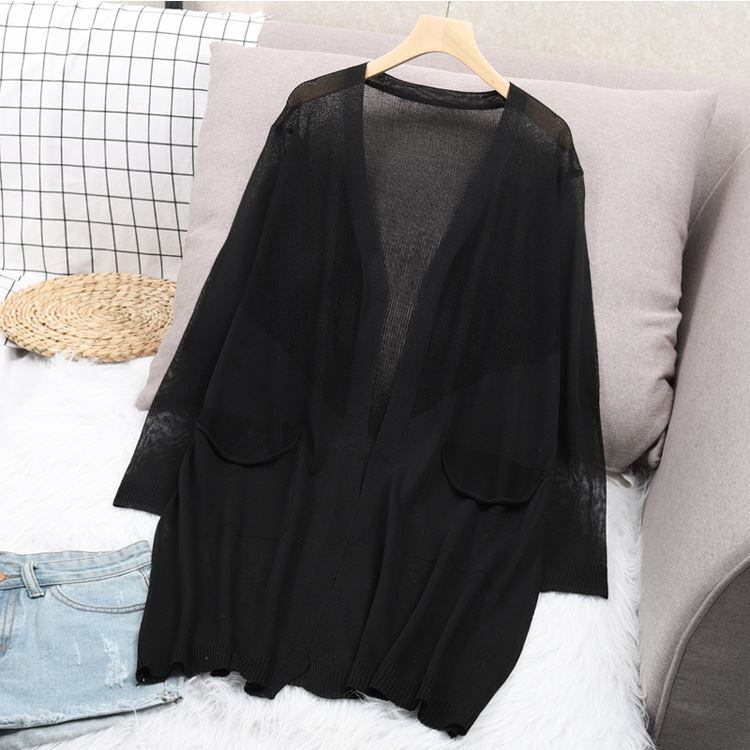 豊富なカラーとシンプルなデザインが使いやすい薄手ニットカーディガン。