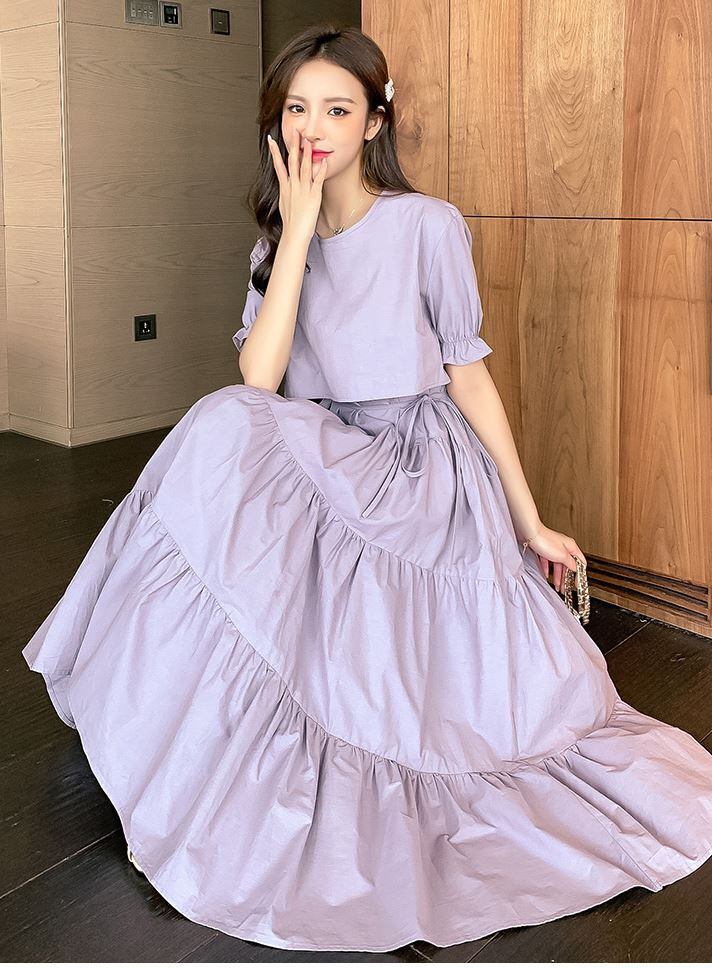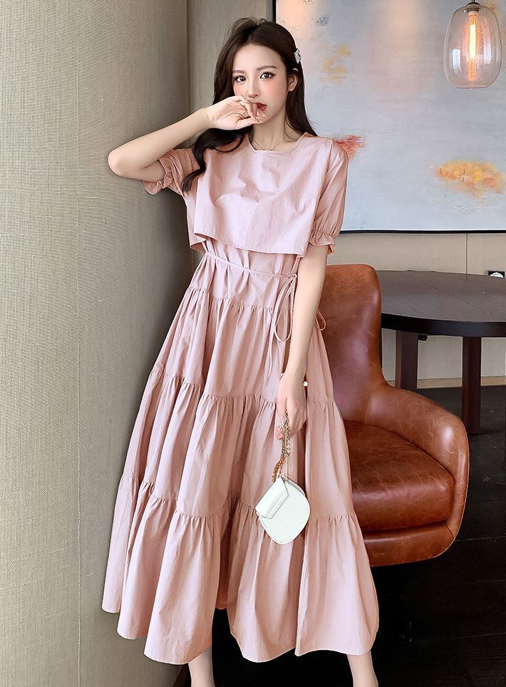 ワンピース レディース ティーアードワンピース レイヤード風 ミモレ丈 ロング丈 パフスリーブ ぽわん袖 ラウンドネック プルオーバー 半袖 無地 ティーアード ひらひら Aライン ゆったり 大きいサイズ フレア 体型カバー おしゃれ 大人可愛い カジュアル 清楚 フェミニン 韓国 キュート ガーリー 春 夏 2022 新作 送料無料 お出かけ デート 普段着 デイリー 着回し 旅行 休日 お買い物 リゾート 紫 パープル ピンク 黒 ブラック S M L XL 10代 20代 30代 40代