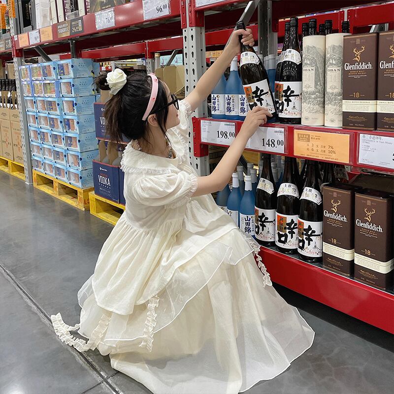ワンピース レディース ティーアードワンピース チュールワンピース ミモレ丈 ロング丈 パフスリーブ レース 段フリル 襟付き フリル シアー シースルー 透け感 プルオーバー 半袖 無地 ティーアード ひらひら Aライン ゆったり 大きいサイズ フレア 体型カバー おしゃれ 大人可愛い カジュアル 清楚 フェミニン 韓国 キュート ガーリー お嬢様 お姫様 モテコーデ 春 夏 2022 新作 送料無料 お出かけ デート 着回し 旅行 休日 お買い物 リゾート ベージュ S M L 10代 20代 30代
