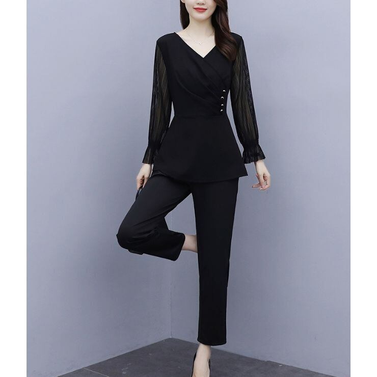 レディース トップス ボトムス プルオーバー ブラウス パンツ セットアップ 2点セット ツーピース 長袖 ふんわり 上下セット 透け感 シースルー 無地 シンプル かわいい 大人可愛い カジュアル エレガント きれいめ ナチュラル おしゃれ お洒落 着回し 主役級 ラブリー OL ビジネス オフィス 通勤 通学 デート お食事会 お出掛け 10代 20代 30代 40代 50代 春 夏 L XL 2XL 3XL 4XL 5XL大きいサイズ ラージサイズ ゆったり 黒 ブラック 送料無料