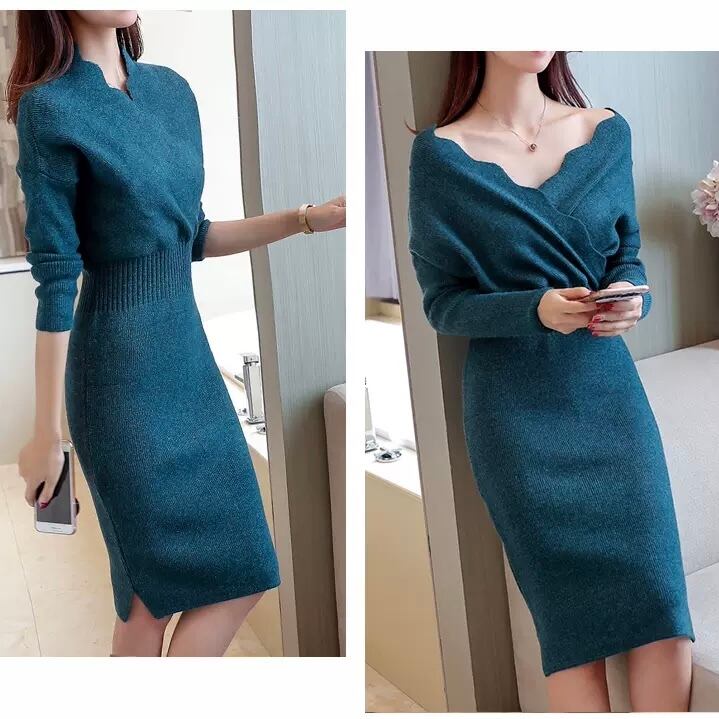 ワンピース Vネック レディース 袖あり スカート ミディアム 膝丈 ミモレ丈 膝下 ニット シンプルカラー 無地 単色 長袖 スタイリッシュ かわいい 大人可愛い シンプル おしゃれ お洒落 大人女子 大人かわいい 大人ガーリー ラブリー キュート ガーリー 春 夏 秋 新作 送料無料 トレンド お出かけ デート 女子会 休日 普段使い 重ね着 タイト タイトワンピース お揃いコーデ 女性用 女っぽ ママ ママコーデ 10代 20代 30代 40代 紺 ライトブルー 黒 ブラック