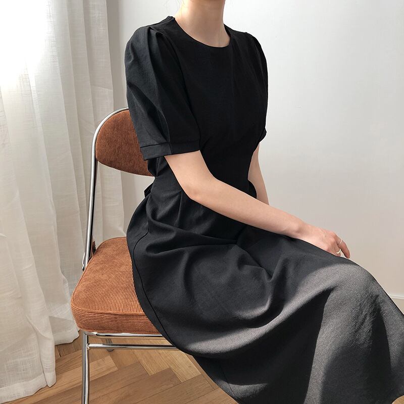 レディース ワンピース ロングワンピ ハイウエスト Aライン パフスリーブ ラウンドネック リボン ジッパー ファスナー ミディ丈 ひざ丈 半袖 襟無 無地 こなれ感 抜け感 ウエストマーク ゆったり シンプル かわいい 大人可愛い カジュアル 楽ちん きれいめ 体型カバー 細見え 着瘦せ 上品 ナチュラル おしゃれ お洒落 着回し 主役級 OL ママ 通勤 通学 お出掛け 女子会 お呼ばれ 食事会 10代 20代 30代 40代 50代 春 夏 M L 黒 ブラック 白 ホワイト 送料無料