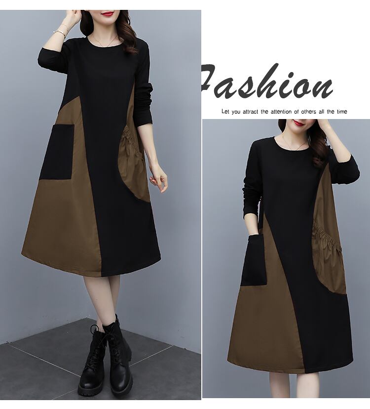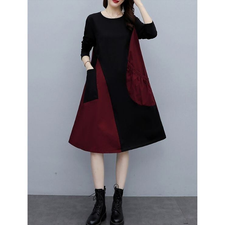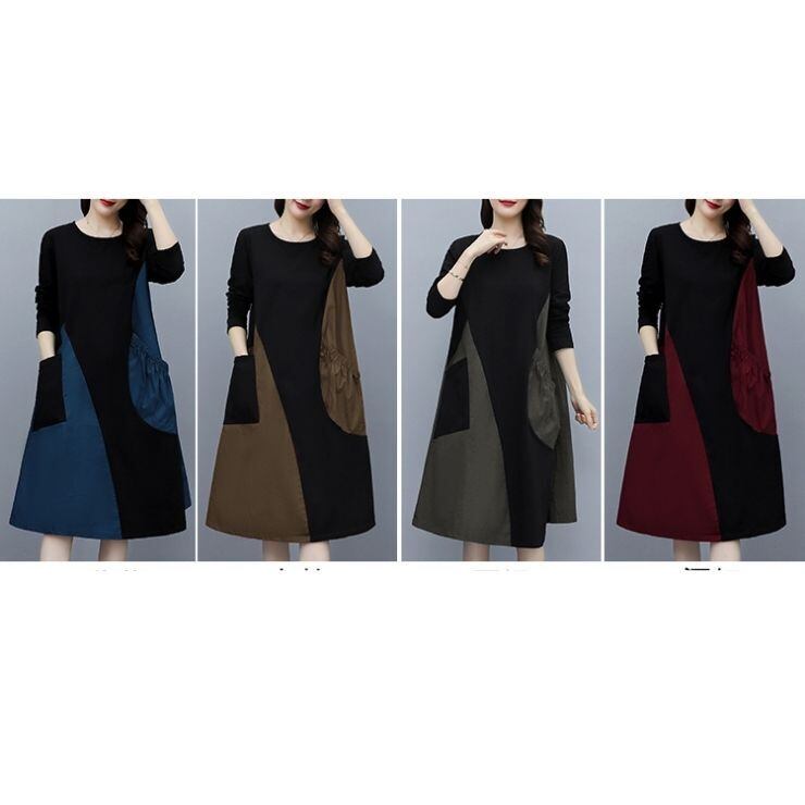 レディース ワンピース ロングワンピ ハイウエスト Aライン ポケット ミディ丈 ひざ丈 長袖 襟無 無地 こなれ感 抜け感 ゆったり シンプル かわいい 大人可愛い カジュアル バイカラー きれいめ 体型カバー 細見え 着瘦せ 上品 ナチュラル おしゃれ お洒落 着回し 主役級 OL 通勤 通学 お出掛け 女子会 お呼ばれ 食事会 10代 20代 30代 40代 50代 春 夏 L XL 2XL 3XL 4XL 大きいサイズ 茶 ブラウン 緑 グリーン 青 ブルー 赤 レッド 送料無料