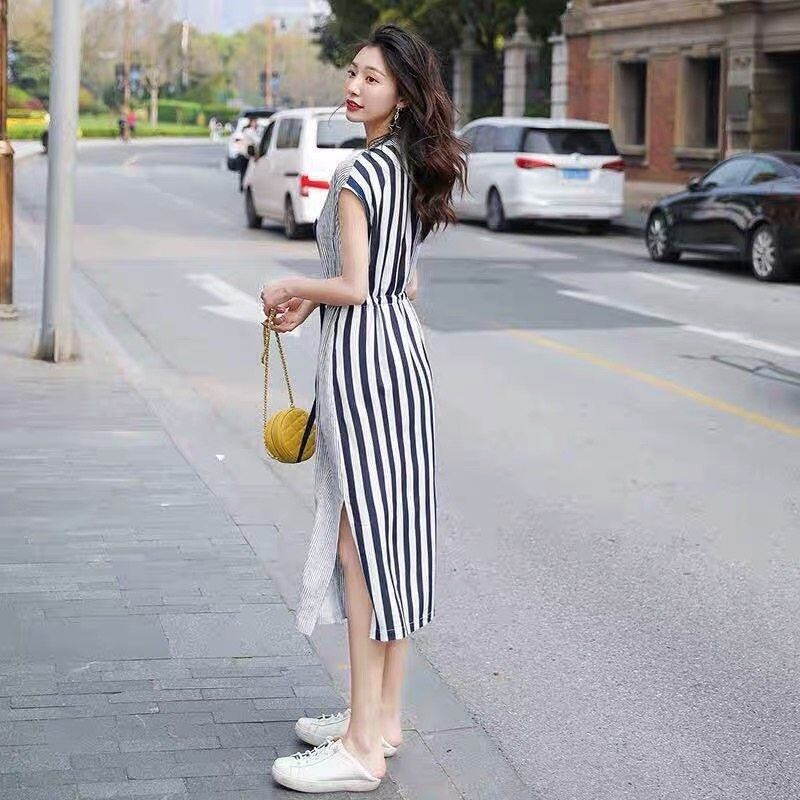 レディース ワンピース ロング丈 スリット ラウンノースリーブ 夏 ストライプ 可愛い キュート 大人かっこいい 大人可愛い 大人女子 カジュアル こなれ感 女の子 お洒落 人気 モデル 20代 30代 40代 50代 L XL 2XL 女子大生 ママ 主婦 OL 学生 大学生 旅行 リゾート 海外 女子会 飲み会 通勤 通学 オフ 休日 モテコーデ 通勤 通学 オフィスコーデ お出かけ デート インスタクラム オルチャン 韓国系 SNSトレン ゆったり アラサー アラフォー アラフィフ