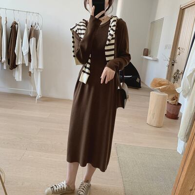ワンピース レディース 春 夏 5カラー カジュアル カットソー リブ素材 シンプル Iライン ゆったり ラフ 長袖 ロング丈 かわいい 大人可愛い デート デイリー ルームウェア お出かけ 休日 旅行 ルームウェア ママウェア 公園 着回し 普段使い 重ね着 お揃い 双子 韓国系 オルチャン ファッション コーデ スタイル キュート ガーリー 甘アイテム ママコーデ アウトドア 体型カバー 細身え トレンド 着回し フリーサイズ ブラック ベージュ グレー マスタードグリーン コーヒーブラウン