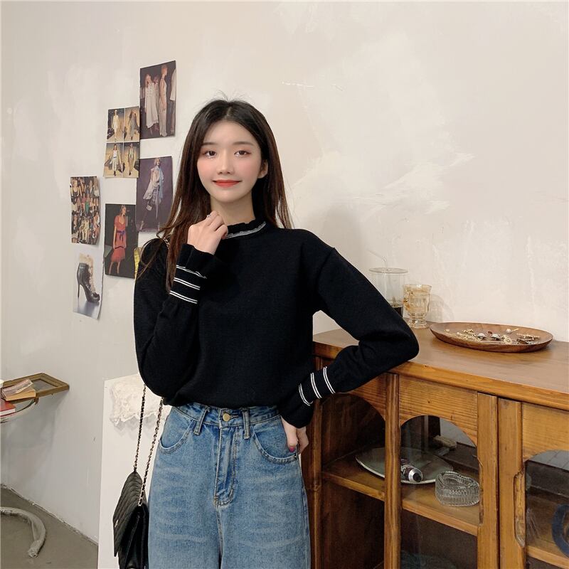 トップス ハイネック プルオーバー フリル スリム 美シルエット 長袖 個性的 クール 主役級 存在感 とろみ感 抜け感 上品 楽ちん こなれ感 ラフ カジュアル 韓国風 大人可愛い きれいめ シンプル おしゃれ 着やせ スタイルアップ OL 学生 ママ 10代 20代 30代 40代 50代 デート お出かけ 女子会 休日 アウトドア イベント 旅行 入学式 入園式 卒園式 公園デビュー ファッション コーデ 定番 送料無料 インスタ映え 女っぽ 大人っぽ 着回し