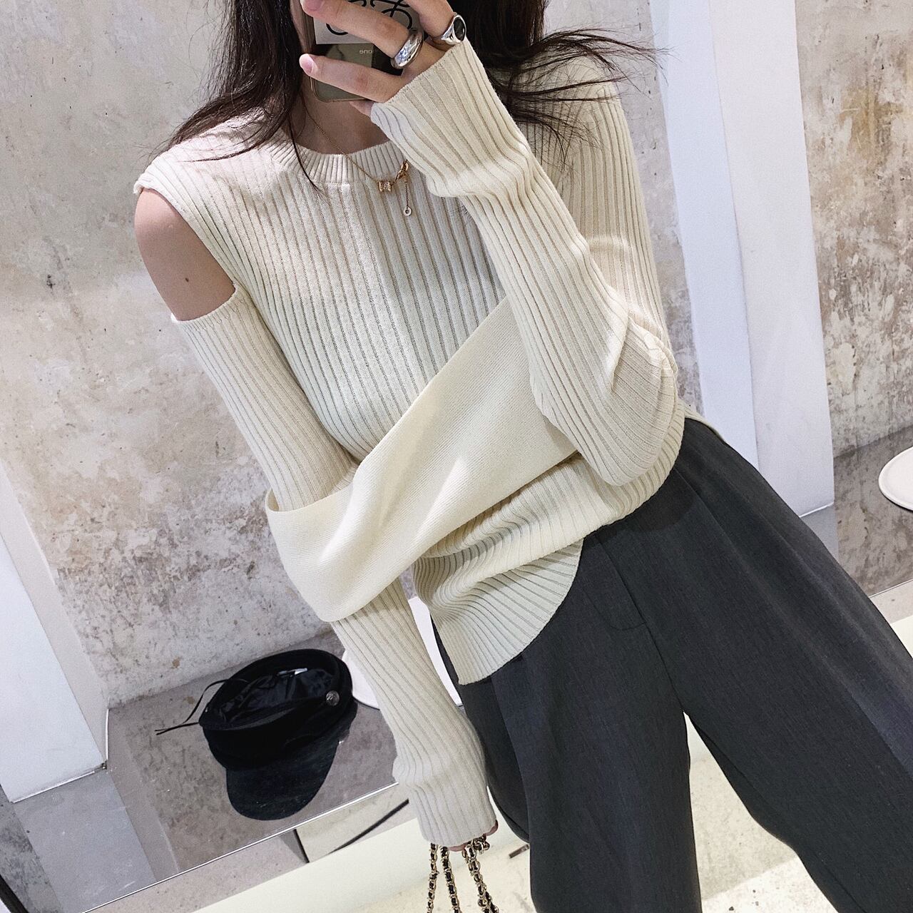 セーター レディース トップス カジュアル ニット リブニット アシンメトリー オフショルダー肩開 オープンショルダーミディアム丈 長袖 大人可愛い きれいめ エレガント ガーリー ルーズ フェミニン 春 夏 秋 冬 二次会 オフィス 通勤 通学 デート お出かけ 女子会 パーティー イベント 体型カバー 通勤 OL オフィス 通学 休日 お出かけ 旅行 人気 流行 こなれ感 抜け感 フェミニン おしゃれ お洒落 着回し 主役級着回し シンプル トレンド ワンサイズ フリーサイズ ホワイト ネイビー
