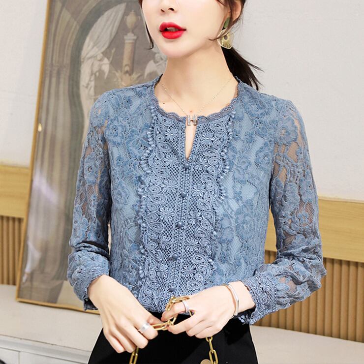 レディース トップス ブラウス レース 透け感 シャツ 長袖 薄手 ノーカラー 薄手 花柄 ブルー 青 きれいめ シースルー メッシュ 華奢見え かわいい カジュアル 大人可愛い 可愛い クール シック 高見え シンプル おしゃれ お洒落 大人女子 ラブリー キュート ガーリー 甘アイテム 10代 20代 30代 40代 オフィス ビジネス OL 通勤 学生 通学 デート お出かけ 女子会 休日 旅行 着回し 普段使い 大人っぽ 流行 人気 着回し こなれ感 清潔感 フェミニン 春 秋 送料無料