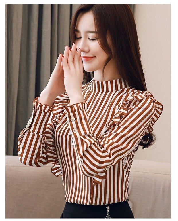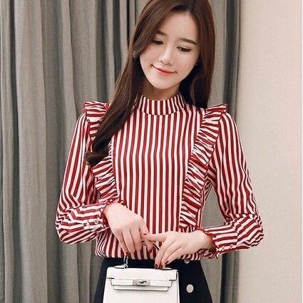 レディース シャツ ブラウス フリルブラウス ストライプ 長袖 春 夏 秋 可愛い キュート 大人かっこいい 大人可愛い 大人女子 カジュアル シンプル こなれ感 女の子 お洒落 人気 モデル 美スタイル 美人 10代 20代 30代 S M L XL 2XL ブラック レッド キャメル 3色展開 ママ 主婦 OL 学生 女子会 飲み会 食事会 合コン オフ 休日 お出かけ ゆったり 海外 モテコーデ モテファション 通勤 通学 オフィスコーデ オルチャンファション 韓国系 お出かけ デート 人気