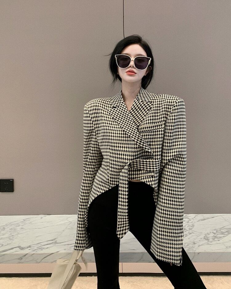レディース アウター Vネック 千鳥格子 チェック柄 ビッグシルエット きれいめ 女っぽ シンプル おしゃれ ラフ スマート レトロ 10代 20代 30代 40代 50代 OL 学生 ママ モダン クラシック ガーリー キュート クール 送料無料 トレンド 上品 韓国 流行 個性的 デート お出かけ 休日 旅行 入学式 入園式 卒園式 公園デビュー 女子会 アウトドア ファッション コーデ 楽ちん 定番 インスタ映え カジュアル こなれ感 イベント 普段使い 細見え スタイルアップ