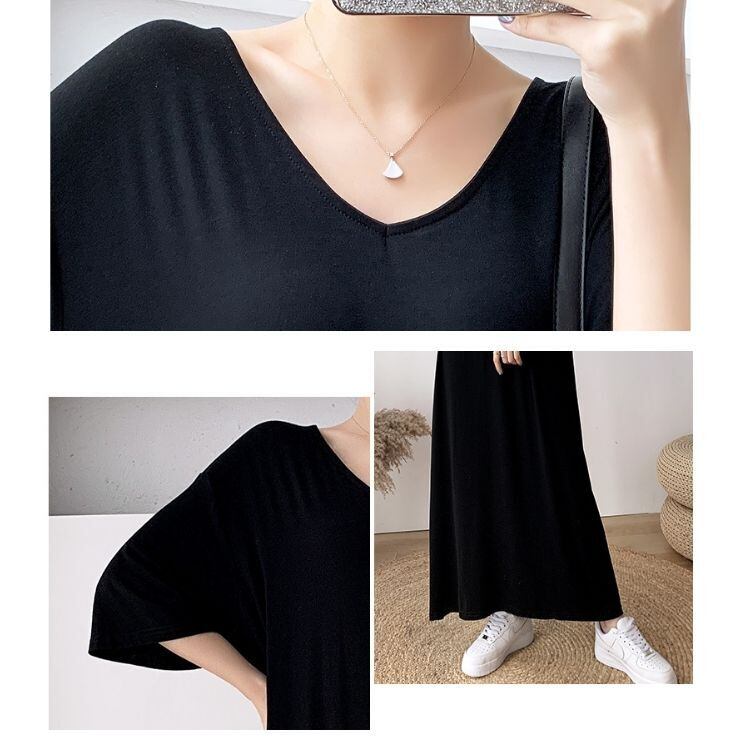 レディース ワンピース ロングワンピ ロングTシャツ マキシ丈 Tシャツワンピ Vネック 半袖 襟無 無地 こなれ感 抜け感 フェミニン シンプル 普段着 ゆったり かわいい 大人可愛い カジュアル きれいめ 体型カバー 細見え 着瘦せ 重ね着 上品 ナチュラル 楽ちん ラフ おしゃれ お洒落 着回し 主役級 OL 通勤 通学 休日 オン オフ ママ お出掛け 女子会 デート 10代 20代 30代 40代 春 夏 ワンサイズ 黒 ブラック 青 ブルー アプリコット 送料無料