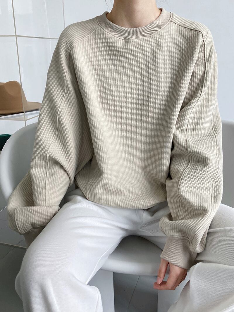 トップス レディース トレーナー スウェット カットソー ワッフル地 カジュアル シンプル 長袖 ボリューム袖 春 夏 秋 かわいい 可愛い 大人 大人っぽ 大人可愛い 大人女子 上品 きれいめ クール おしゃれ お洒落 女っぽ シンプル カジュアル ファッション スタイル コーデ 個性的 こなれ感 ママコーデ お出かけ デート ランチ 女子会 旅行 アウトドア リゾート 海 休日 普段使い デイリー 着回し 重ね着 ラフ 楽ちん ゆったり 体型カバー 通勤 通学 M L ベージュ グレー ブラック