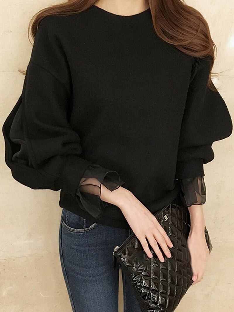 レディース トップス Tシャツ ラウンドネック フリル 長袖 春 秋 冬 かわいい 可愛い 大人 大人っぽ 大人可愛い 大人女子 かっこいい クール おしゃれ お洒落 女っぽ キュート フェミニン ガーリー ナチュラル シンプル カジュアル ファッション スタイル コーデ お出かけ デート ランチ 女子会 旅行 休日 アウトドア 普段使い 着回し 重ね着 お揃い ラフ 楽ちん ゆったり 体型カバー 通勤 OL 通学 学生 10代 20代 30代 40代 ブラック 黒色 ワンサイズ ワンカラー 送料無料