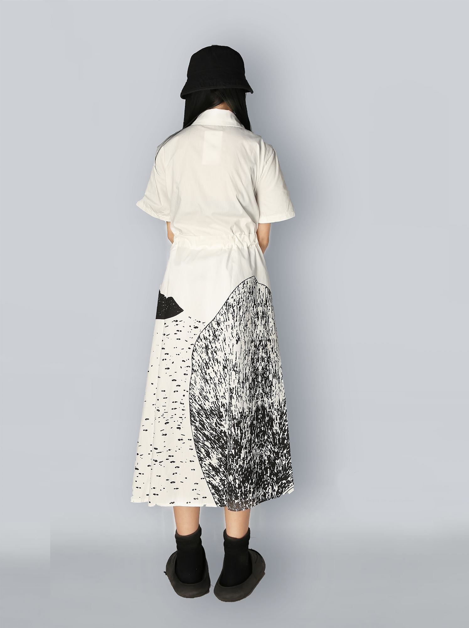 ワンピース レディース シャツワンピース フレアワンピース 膝下 ミモレ ミモレ丈 レギュラーカラー ポロカラー 半袖 プルオーバー プリント アート柄 レトロ トレンド ギャザー ウエストマーク ウエストリボン Aライン ゆったり 大きいサイズ オーバーサイズ フレア 体型カバー おしゃれ 大人 モード系 大人可愛い カジュアル 韓国 春 夏 秋 2022 新作 送料無料 お出かけ 女子会 普段着 着回し イベント 休日 リラックス 白 ホワイト 黒 ブラック 10代 20代 30代 L XL