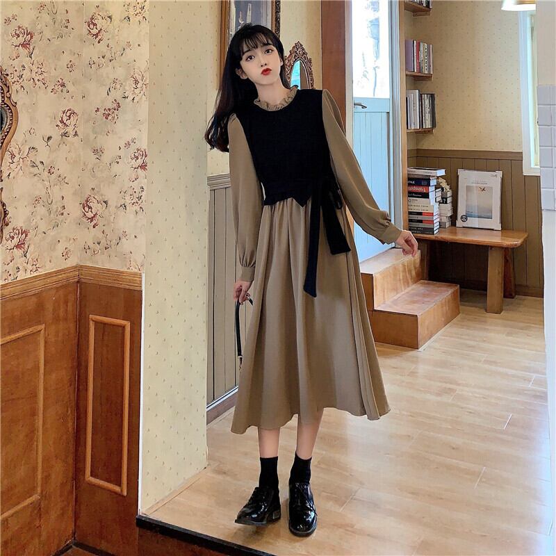 レディース ワンピース ワンピ ドレス ロング 膝下 フェイク 重ね着風 レトロ バイカラー Aライン ラウンドネック 長袖 リボン フェアリー かっこいい かわいい カジュアル 大人可愛い 可愛い クール シック 高見え シンプル おしゃれ お洒落 大人女子 ラブリー キュート ガーリー 甘アイテム 10代 20代 30代 40代 オフィス ビジネス OL 通勤 学生 通学 デート お出かけ 女子会 休日 旅行 着回し 普段使い 大人っぽ 流行 トレンド 人気 着回し こなれ感 送料無料