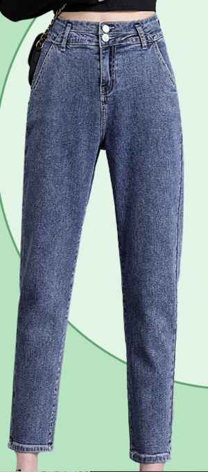下半身のラインをカバーできるのが魅力のデニムパンツ。