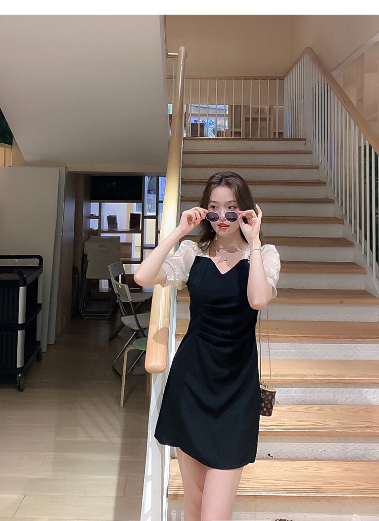 レディース ドレス ワンピース スカート ショート丈 Vネック スリット 半袖 パフ袖 パフスリーブ ハイウエスト プルオーバー Aライン 10代 20代 無地 かわいい 可愛い 大人 大人っぽ 大人可愛い 大人女子 上品 きれいめ クール おしゃれ お洒落 女っぽ キュート セクシー エレガント ナチュラル シンプル カジュアル ファッション スタイル コーデ 美スタイル お出かけ デート ランチ 女子会 パーティー 結婚式 二次会 大きいサイズ ラージサイズ S M L XL ブラック 夏 送料無料