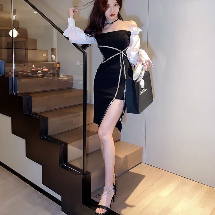ドレス ワンピース レディース パーティドレス キャバドレス ミニドレス スパンコール きらきら ミニ丈 オフショルダー 長袖 ぽわん袖 無地 華やか タイト スリム 細身 切替 スリット 深スリット ハイウエスト キャバ 大人可愛い フォーマル セクシー フェミニン きちんと感 きれいめ エレガント 大きいサイズ 上品 韓国 春 夏 秋 冬 2022 新作 送料無料 結婚式 二次会 お呼ばれ ブライズメイド 演奏会 フォーマル パーティー 黒 ブラック S M L XL 10代 20代 30代 40代