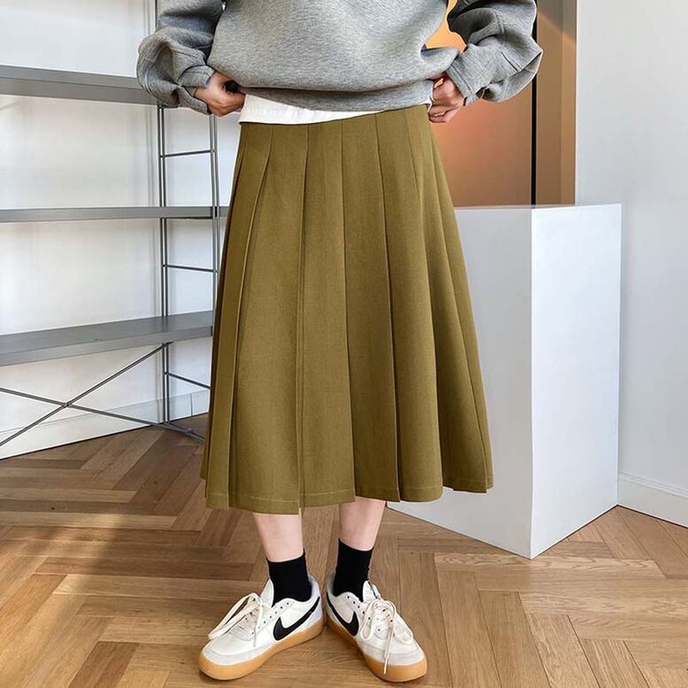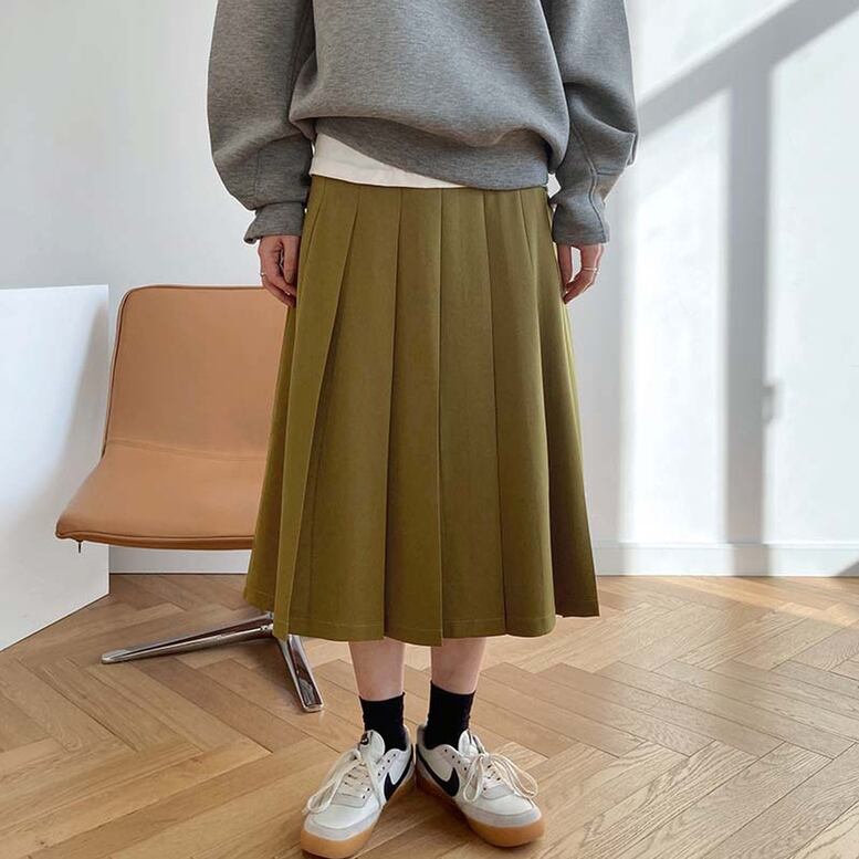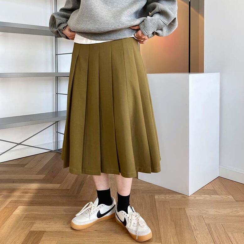 大人っぽいロング丈に立体的な太プリーツが上品なシルエットを演出してくれるスカート