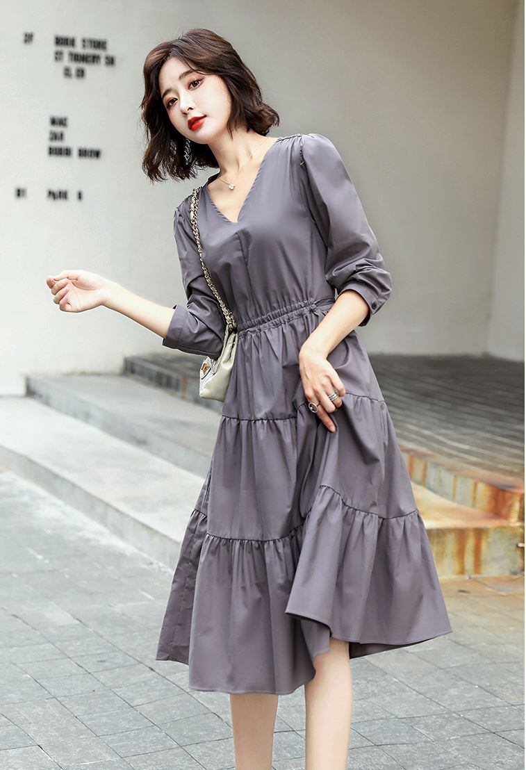ワンピース レディース ティアードワンピース 膝丈 ひざ丈 膝下 Vネック 長袖 プルオーバー 無地 ベーシック ハイウエスト ウエストマーク ウエストリボン Aライン 大きいサイズ フレア 体型カバー スタイリッシュ ギャザー おしゃれ 大人 かわいい 大人可愛い カジュアル 清楚 フェミニン 上品 韓国 キュート シンプル 春 夏 秋 冬 オールシーズン 送料無料 お出かけ デート 女子会 普段着 デイリー 着回し 黒 ブラウン グレー ピンク 10代 20代 30代 M L XL 2XL