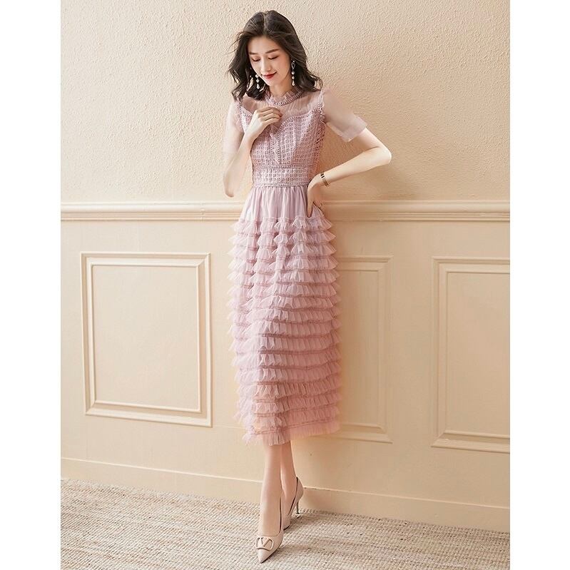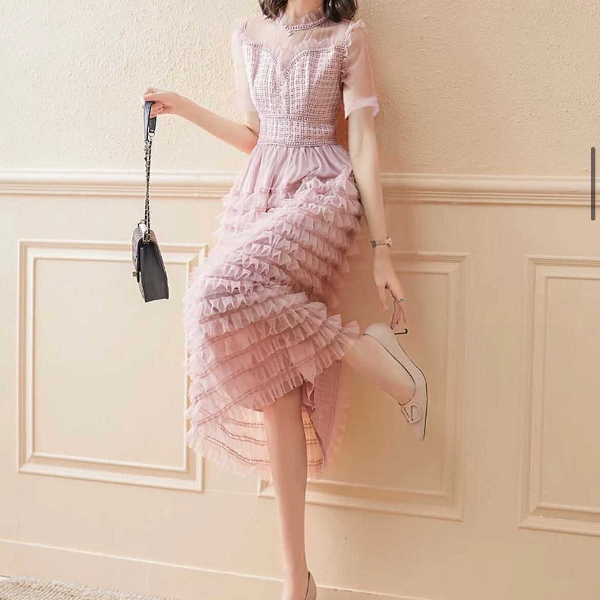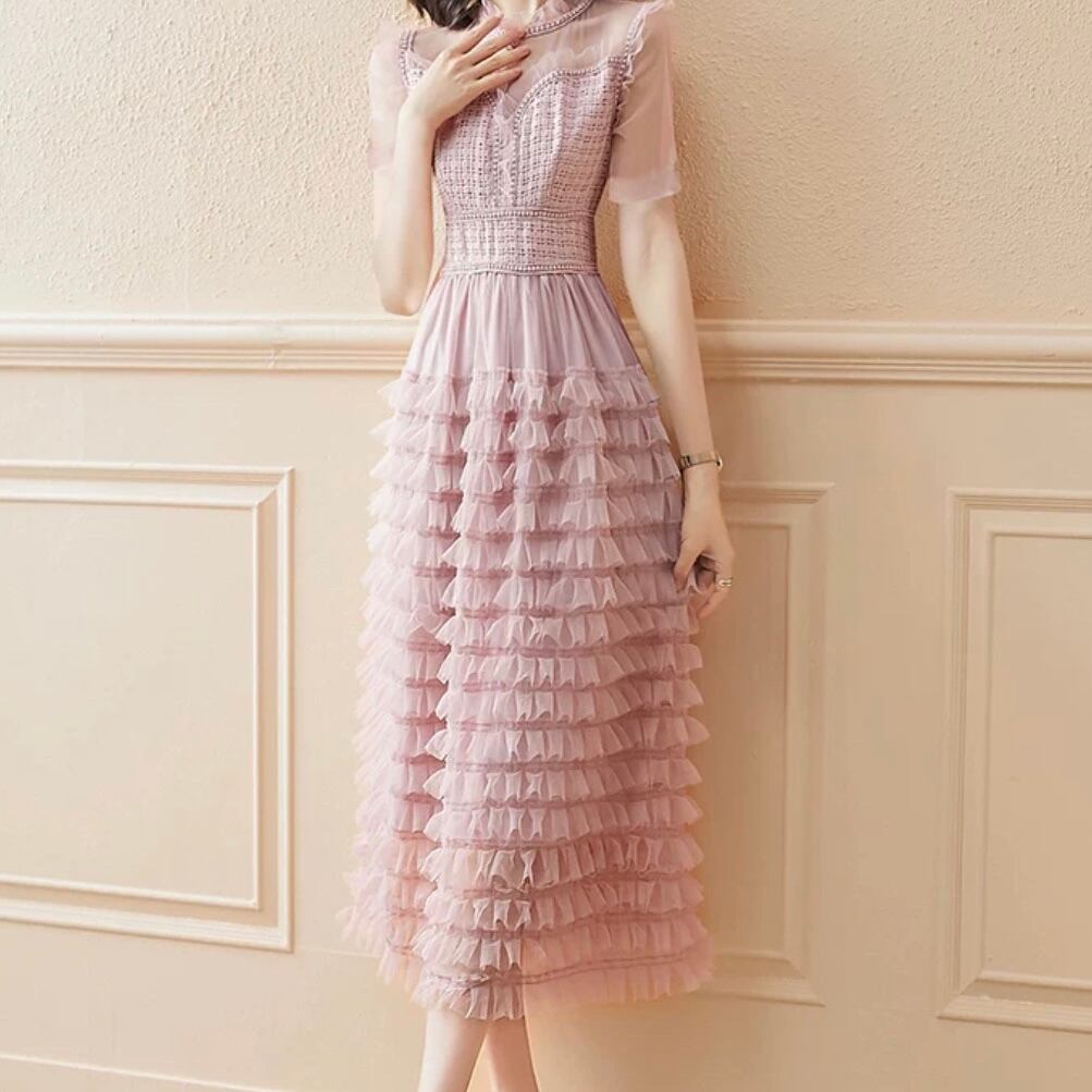 レディース ハイエンドロングスカート ロングドレス ミディアム丈 シースルー フリル フェミニン 半袖 春 夏 秋 可愛い キュート 大人かっこいい 大人可愛い 大人女子 カジュアル こなれ感 お洒落 人気 モデル 美スタイル 美人 美脚 上品 20代 30代 40代 S M L XL 2XL ピンク 主婦 OL 学生 女子会 食事会 会食 飲み会 女子会 パーティ お呼ばれ 結婚式 お祝い 同窓会 キャバ嬢 オフ 休日 お出かけ 海外 モテコーデ モテファション オフィス デート SNS アラサー