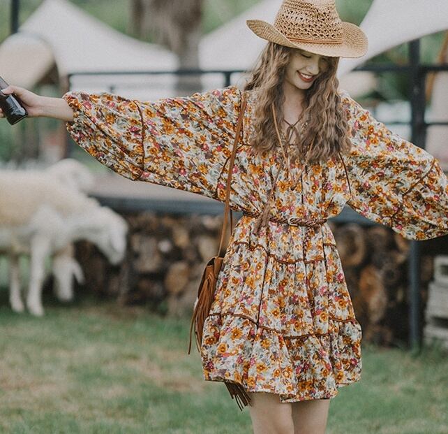 スカート ワンピース ミニワンピース ミニ ミニ丈 ショート ショート丈 膝上 袖あり 長袖 Vネック 襟なし フレア フレアスカート Aライン リボン かわいい 大人可愛い カジュアル おしゃれ お洒落 レトロ 大人女子 ラフ ラブリー キュート ガーリー 柄 花柄 小花柄 フラワー 春 秋 10代 20代 レディース ママ マタニティ 女の子 学生 通学 デート お出かけ 女子会 休日 イベント リゾート 旅行 海 普段使い 楽ちん 送料無料 フリーサイズ 大きめ ゆったり 春カラー