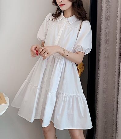 トップス スカート ワンピース シャツ ブラウス 白シャツ 白トップス シャツワンピース フレアワンピース ティアードワンピース シャツワンピ ミニ ミニ丈 ショート ショート丈 袖あり 半袖 パフスリーブ 襟付き フレア ワイド Aライン かわいい 大人可愛い シンプル カジュアル おしゃれ お洒落 レトロ ラフ ラブリー キュート ガーリー 甘アイテム 無地 春 夏 10代 20代 30代 レディース ママ マタニティ 着回し 普段使い 送料無料 サイズ M L XL 2XL ゆったり 白 ホワイト
