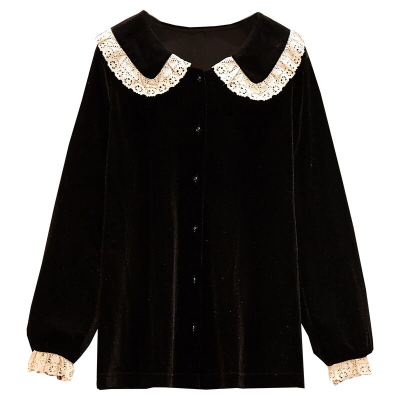 レディース ブラウス シャツ 長袖 ベルベット ベロア レース フリル 大きいサイズ 秋 冬 人形 ドール ストレート ブラック パーティー お呼ばれ 2次会 こなれ感 カジュアル フェミニン エレガント ヘビロテ かわいい カジュアル 大人可愛い 可愛い 高見え シンプル おしゃれ お洒落 大人女子 ラブリー キュート ガーリー 甘アイテム 10代 20代 30代 40代 オフィス ビジネス OL 通勤 学生 通学 デート お出かけ 女子会 休日 旅行 着回し 普段使い 大人 流行 トレンド 送料無料