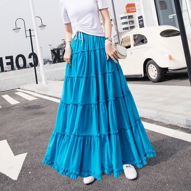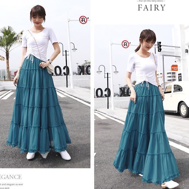 スカート ボトムス レディース ロングスカート フレアスカート ティーアードスカート ロング ロング丈 マキシ マキシ丈 フレア Aライン ティアード プリーツ フリル ハイウエスト 無地 かわいい 大人可愛い シンプル カジュアル 大人 おしゃれ お洒落 大人女子 こなれ感 ラフ ラブリー キュート ガーリー ルーズ デート お出かけ リゾート 旅行 着回し 普段使い 韓国 楽ちん 体系カバー 春 夏 秋 送料無料 白 黒 赤 青 緑 エメラルドグリーン M L XL 10代 20代 30代