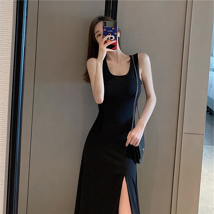 ワンピース レディース タイトワンピース ノースリブワンピース ロング ロング丈 ラウンドネック Uネック ノースリーブ 無地 ベーシック ハイウエスト ひらひら Aライン 大きいサイズ タイト フレア スリム 体型カバー スリット スタイリッシュ セミフレア フロントスリット おしゃれ 大人 大人可愛い カジュアル セクシー 韓国 シンプル 夏 送料無料 普段着 デイリー 着回し 海 プール ビーチ リゾート お出かけ デート 黒 ブラック 10代 20代 30代 40代 フリーサイズ ワンサイズ