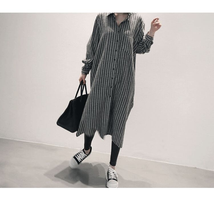 レディース ワンピース ロングワンピース Vネック 襟あり 長袖 ロング丈 ミドル丈 ボタン 前開き ストライプ 春 秋 10代 20代 30代 かわいい 可愛い 大人 大人っぽ 大人可愛い 大人女子 上品 きれいめ かっこいい クール おしゃれ お洒落 女っぽ シンプル カジュアル ファッション スタイル コーデ お出かけ デート ランチ 女子会 旅行 休日 通勤 OL 通学 学生 普段使い 着回し ラフ ルーズ ゆったり 体型カバー マタニティ ママコーデ ルームウェア 大きいサイズ グレー 料無料