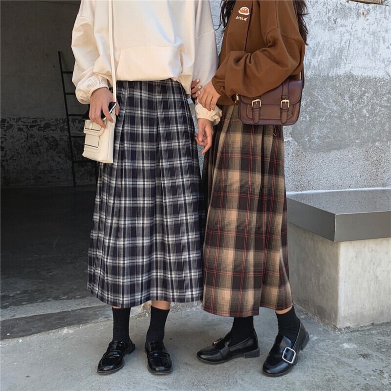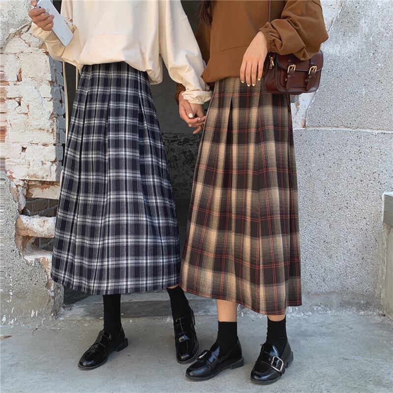 レディース スカート ボトムス ミモレ丈スカート ミモレ丈 長め丈 ひざ下丈 プリーツスカート 送料無料 チェック柄 グリッド柄 Aライン ハイウエスト レトロ かわいい 大人かわいい シック ウール ブラック ブラウン お出かけ デート デイリー 普段使い 着回し 旅行 女子旅 10代 20代 30代 40代 M L XL 2XL 3XL 4XL 大きいサイズ プラスサイズ サイズ豊富 クラシカル おしゃれ 双子 双子コーデ 裏地付き ウエストゴム サイドジッパー グリッド グリッド柄