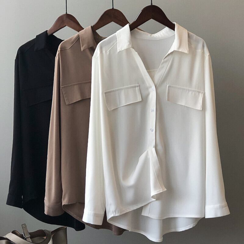レディース トップス ブラウス シャツ シフォンブラウス シフォンシャツ シフォントップス シフォン シンプル 無地 Vネック 襟付き フロントボタン ゆったり ラフ ルーズ 楽ちん こなれ感 おしゃれ 大人 大人カジュアル きれいめ マスタード ホワイト ブラック ブラウン お出かけ デート デイリー 普段使い 着回し オフィス オフィスカジュアル 通勤 10代 20代 30代 40代 M L レトロ 長袖ブラウス 長袖シャツ ロングスリーブ 長袖 羽織り ドレープシャツ