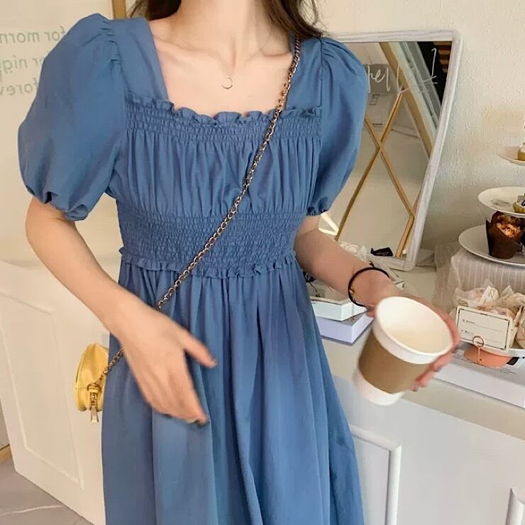 ワンピース レディース ブルー ネイビー 脚長効果 美脚効果 着痩せ効果 ママ 10代 20代 30代 友だち 友達 プレゼント お祝い ギフト 誕生日 誕生日プレゼント 旅行 海外旅行 プール フェス リゾート お出かけ 送料無料 人気 SNS 高見え 高級感 お洒落 オシャレ 可愛い 大人可愛い ニュアンスカラー パステルカラー デート 食事会 女子会 飲み会 合コン ガーリー フェミニン エレガント 清楚 万能 着回し ロング丈 パフスリーブ フリル フレアスカート 春 夏 ワンサイズ