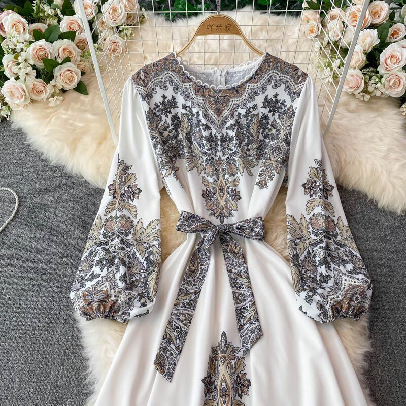 レディース ワンピース ワンピ レトロ 長袖 薄手 ラウンドネック 丸首 ロング 花柄 Aライン パフスリーブ ぽわん袖 リボン パーティー お呼ばれ 2次会 こなれ感 カジュアル フェミニン 送料無料エレガント ヘビロテ かわいい カジュアル 大人可愛い 可愛い 高見え シンプル おしゃれ お洒落 大人女子 ラブリー キュート ガーリー 甘アイテム 10代 20代 30代 40代 オフィス ビジネス OL 通勤 学生 通学 デート お出かけ 女子会 休日 旅行 着回し 普段使い 流行 トレンド