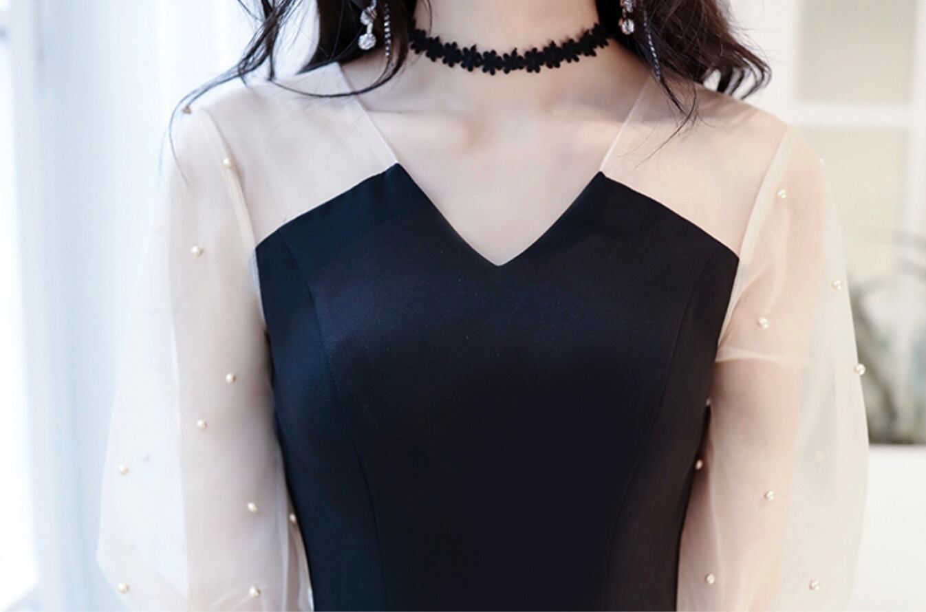 ヌーディーカラーのシースルー生地xシックなブラックが見事にマッチしたワンピースです。