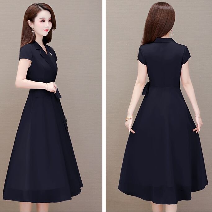 シンプルなドレスワンピース、ハイウエストで美脚効果も◎
