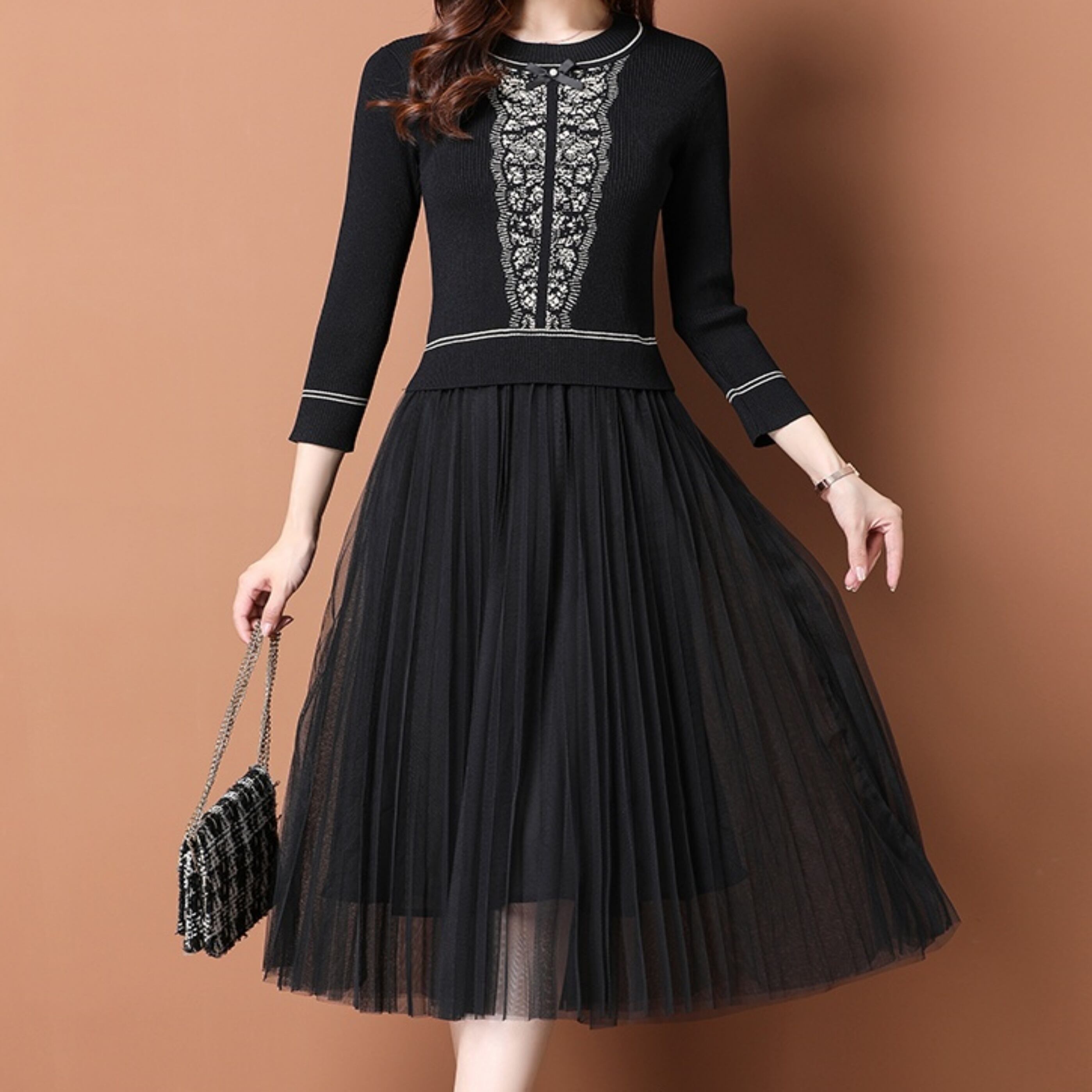 スカート ワンピース オールインワン フレアスカート チュールスカート フレアワンピース 膝下 ミディアム丈 袖あり 7分袖 七分袖 長袖 Uネック ラウンドネック 襟なし フレア ストレート Aライン 切り替えデザイン チュール シフォン リボン 透け感 かわいい 大人可愛い カジュアル 大人 上品 キュート 柄 春 秋 冬 20代 30代 40代 レディース OL 通勤 学生 通学 デート お出かけ 休日 パーティー イベント ホテル レストラン 送料無料 サイズ M L XL 2XL 黒 ブラック