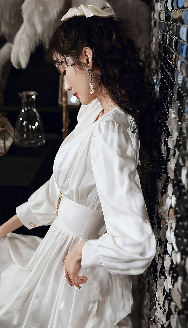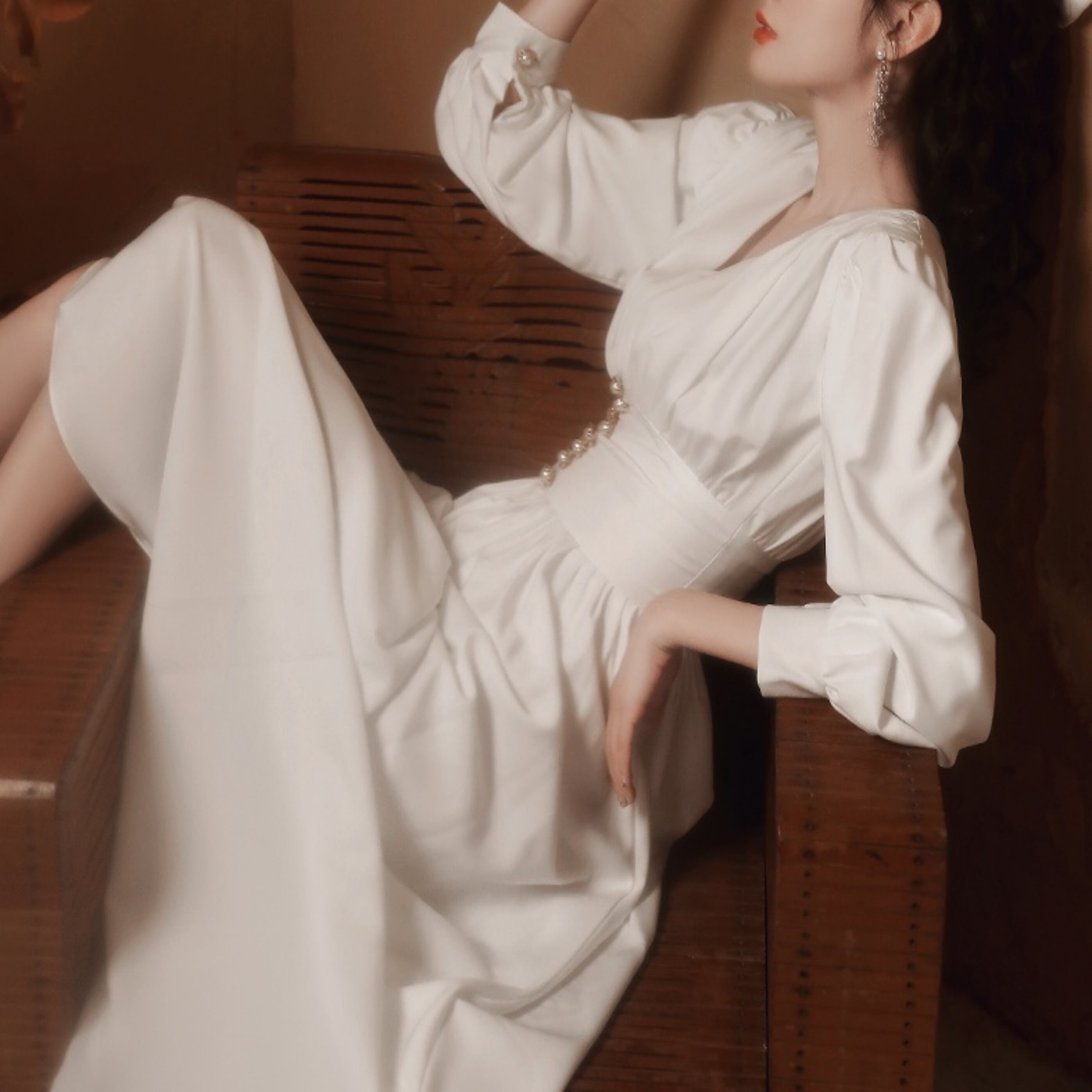 スカート ワンピース オールインワン フレアスカート フレアワンピース ワンピドレス ロング ロング丈 袖あり 長袖 ボリューム袖 パフスリーブ Vネック 襟なし フレア セミフレア Aライン ウエストマーク ハイウエスト かわいい 大人可愛い シンプル カジュアル 大人 上品 おしゃれ お洒落 レトロ 大人女子 無地 春 秋 冬 20代 30代 レディース 通勤 学生 通学 デート パーティー イベント リゾート 旅行 ホテル レストラン 韓国 送料無料 サイズ S M L XL 2XL 白 ホワイト