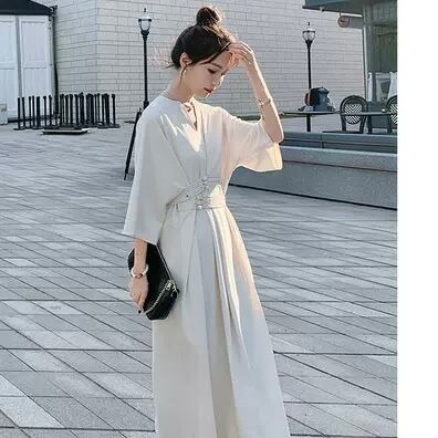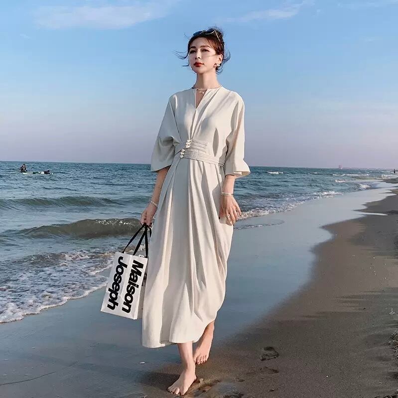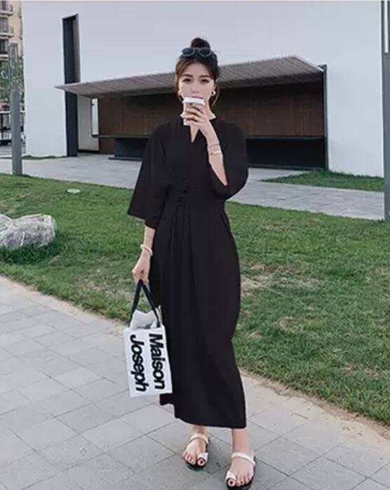 ワンピース とろみ感 フリル Vネック ウエストマーク レディース 女性用 ボタン スリム 美シルエット ハイウエスト 七分袖 きれいめ 女っぽ シンプル おしゃれ ラフ ゆったり 10代 20代 30代 40代 50代 OL 学生 ママ ガーリー キュート 送料無料 トレンド 上品 韓国 流行 デート お出かけ 休日 旅行 入学式 入園式 卒園式 公園デビュー 女子会 アウトドア イベント 普段使い 細見え スタイルアップ ファッション コーデ 楽ちん 定番 カジュアル こなれ感
