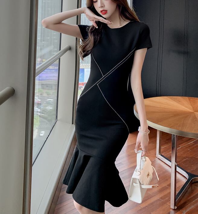 ワンピース レディース ブラックワンピース タイトシルエット きれいめ エレガント コンサバ マーメイドスカートハイウエスト 膝丈 ラウンドネック フリルスリーブ デザイン タイト ハイウエスト バイカラー スタイルアップ 脚長効果 シンプル きれいめ フェミニン 女子会 上品 お洒落 おしゃれ 大人可愛い イベント 普段使い デイリー デート パーティー セレモニー フォーマル お呼ばれ おでかけ 通勤 オフィス 存在感 個性的 トレンド オルチャン 韓国 S M L XL ブラック送料無料
